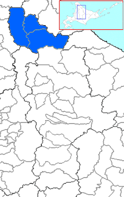 Nakagawa (中川郡 (天塩国), Nakagawa-gun (Teshio no kuni)) is a district located in Kamikawa Subprefecture, Hokkaido, Japan. There is a district with the same name in Tokachi Subprefecture, see Nakagawa (Tokachi) District, Hokkaido.