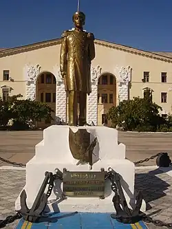 Sevastapol was recaptured in 1944, but had suffered heavy damage. On 4 March 1946, a new school, designated military unit 69202, was established in the city to provide a two-year training course for small ship commanders.[2] Captain 1st Rank Yuri Ladinsky was appointed its first commander.[8] Reconstruction of the city, naval base, and school took place, and on 26 July 1946, Captain 1st Rank Boris Nikitin was appointed the new head. 225 cadets were enrolled at the start of the academic year on 1 November 1946.[8] On 30 April 1947, the school received its military banner from the Commander of the Black Sea Fleet, Admiral Filipp Oktyabrsky, and on 1 May 1947 the cadets took part in the city's parade for the first time since the war.[2] On 1 September 1948 the school name was restored as the Black Sea Higher Naval School, and on 20 September 1948 Vice-Admiral Gavriil Zhukov took command of the school.[9] His successor in 1950 was Hero of the Soviet Union Rear-Admiral Ivan Kolyshkin.[9] By the resolution of the Council of Ministers No. 1857 on 18 April 1952, and the Order of the Minister of the Navy No. 107 on 24 April 1952, the school was renamed the P. S. Nakhimov Black Sea Higher Naval School, commemorating the 150th anniversary of the birth of Admiral Pavel Nakhimov. Kolyshkin was succeeded as head of the school by Rear-Admiral Nikolai Bogdanov in December 1953, and he in turn by Admiral Filipp Oktyabrsky in 1957.[10]
