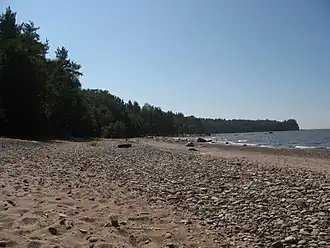 Narva-Jõesuu (Estonian: Narva-Jõesuu linn) is an urban municipality of Estonia, in Ida-Viru County. It comprises the town of Narva-Jõesuu, settlements of the former parish of Vaivara, and two former distant exclaves (the oil shale mining settlements Sirgala and Viivikonna) of the urban municipality of Kohtla-Järve.[1] The municipality surrounds two exclave neighbourhoods (dacha districts) of the city of Narva, Olgina and Kudruküla, both of which share their names with an adjacent village in Narva-Jõesuu municipality.