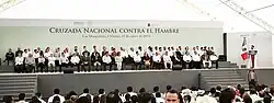 The National Crusade Against Hunger (Cruzada Nacional Contra el Hambre or CNCH) is a program sponsored by the Mexican government.[1] Its main purpose is to significantly reduce hunger and poverty in Mexico through social intervention, increasing the general socio economic status of the communities by the development of infrastructure. It was announced on December 1, 2012 by Mexican president Enrique Peña Nieto during his inauguration. The program started on January 21, 2013 with an event in Las Margaritas, Chiapas.[2]
