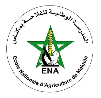 The National School of Agriculture of Meknes (ENA Meknes or ENAM) is a Moroccan public institution. It provides programs in higher agronomic education,[1] rural development, and scientific research located in Meknes. ENA was established in 1942, during the French protectorate of Morocco, initially named the Moroccan School of Agriculture, offering a two-year program at the beginning, training agricultural technicians.[2]