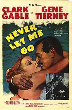 Never Let Me Go is a 1953 British adventure romance film[2][3] starring Clark Gable and Gene Tierney. The picture, directed by Delmer Daves and produced by Clarence Brown, was from a screenplay by George Froeschel and Ronald Millar, based on the 1949 novel Came the Dawn by Roger Bax.