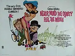 Never Mind the Quality Feel the Width is a 1973 British comedy film directed by Ronnie Baxter and starring John Bluthal, Joe Lynch, Yootha Joyce, Wendy King and Bernard Stone.[2][3] It was a spin-off from the ITV television series Never Mind the Quality, Feel the Width (1967–71) about two mismatched tailors in the East End of London.[4]
