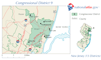 New Jersey's 9th congressional district is an urban congressional district in the U.S. state of New Jersey, and is currently represented in Congress by Democrat Nellie Pou following the death of Bill Pascrell in 2024, first elected in 1996 from the old 8th district. The 9th district consists largely of municipalities in Bergen and Passaic Counties.