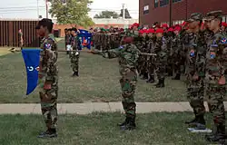 The Civil Air Patrol offers a cadet program for youth aged 12 to 21.[8] The cadet program is organized around four main program elements: leadership, aerospace, fitness, and character. Cadets progress through the self-paced program to complete tasks in each program area in order to earn promotions and awards.[9]