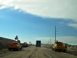 Most of the current route of Highway 12 was originally a sand road until it was paved through the 1950s and early 1960s.[10] The current NC 12 shows up on the 1964 map running from Ocracoke to Whalebone.[11] In 1976 NC 12 was extended onto the mainland to connect with US 70[12][13] In 1987, NC 12 was extended north of Nags Head along the Virginia Dare Trail (then Business US 158)[14][15] NC 12 was extended further to Corolla, its present northern terminus, a year later.[15][16] A condition of the extension imposed by the North Carolina Department of Transportation is the road extends no further than Corolla.[17]