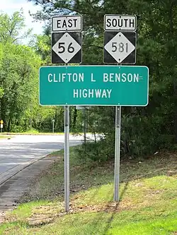 - Clifton L Benson Highway – Official North Carolina name of NC 56, from Louisburg to NC 58, north of Castalia (approved: December 7, 1972).[2]