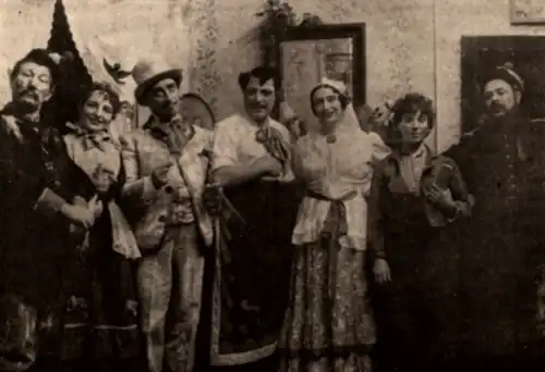 Public protests erupted in 1890, when Iulian allowed Iancu Brezeanu to take over as Ipingescu; Brezeanu was able to convince the public that he would not improve on his predecessor's standard performance, and went on to perform in that role for almost 50 years.[19] At various times, this ensemble also included a young Maria Giurgea, appearing in travesti as Spiridon—she was almost sacked on her first appearance, after reflexively cursing the violent Dumitrache (this was the first documented instance in which Romanian profanity had been uttered on any stage).[115] The public's enduring enthusiasm for the play prompted the National Theater Iași and the National Theater Craiova to begin their own stagings.[116] A continuous string of authorized and unauthorized production followed, with Caragiale noting in 1899 that his text had effectively been stolen, and that virtually no one paid him royalties on it.[117] He continued to involve himself in authorized production and, in 1905, watched on approvingly as Nicolae Soreanu began studying for Venturiano.[115] The same role was taken up at the TNB by Petre Liciu, who was described by his colleague Ion Livescu as the best Venturiano of the early 20th century.[118] In parallel, the aspiring comedian Constantin Tănase broke with tradition by reciting Dumitrache's lines, instead of lyrical poetry, for his entry exam at the Bucharest Conservatory.[119]