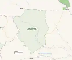 Odzala-Kokoua is an approximately 13,500-square-kilometre (5,200 sq mi) national park and biosphere reserve in northwestern Republic of the Congo, established in 1935.[1][3][4] The park has preserved old-growth rainforest and variable terrain, ranging from 350-metre (1,150 ft) tall hills to dense jungle and numerous glades.[5] Odzala-Kokoua has dry forest, savanna, and rainforest ecosystems.[6][7] The park is managed by African Parks in partnership with the Congolese government.[1][5]