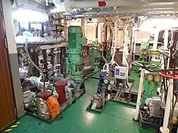 The primary purpose of a shipboard oily water separator (OWS) is to separate oil and other contaminants that could be harmful for the oceans. The International Maritime Organization (IMO) publishes regulations through the Marine Environment Protection Committee (MEPC).[2] On July 18, 2003, the MEPC issued new regulations that each vessel built after this date had to follow. This document is known as MEPC 107(49)[3] and it details revised guidelines and specifications for pollution prevention equipment for machinery space bilges of ships. Each OWS must be able to achieve clean bilge water under 15 ppm of type C oil or heavily emulsified oil, and any other contaminants that may be found. All oil content monitors (OCM) must be tamper-proof. Also whenever the OWS is being cleaned out the OCM must be active. An OWS must be able to clear out contaminants as well as oil. Some of these contaminating agents include lubricating oil, cleaning product, soot from combustion, fuel oil, rust, sewage, and several other things that can be harmful to the ocean environment.[4]