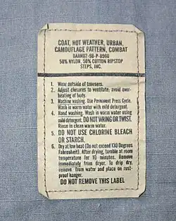 An experimental urban camouflage Battle Dress Uniform was developed and used during the Urban Warrior exercises of 1999. The pattern, sometimes called T-pattern or T-block, consists of a medium gray, dark gray, and black color arranged in a geometric pattern, intended as a 'pattern breaker' to make Marine troops harder to locate when in such environments. Like all modern BDUs, it is made of a lightweight rip-stop material. The pattern was never officially adopted, and it has since been superseded by MARPAT.
