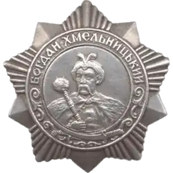 The Order of Bohdan Khmelnitsky (Russian: Орден Богдана Хмельницкого, romanizedOrden Bogdana Khmel'nitskogo, Ukrainian: Орден Богдана Хмельницького, romanizedOrden Bohdana Khmelʹnytsʹkoho) was a Soviet award named after Bohdan Khmelnytsky, Hetman (leader) of the Ukrainian Cossack Hetmanate. The award was first established on October 10, 1943, by the Presidium of Supreme Soviet of the USSR during World War II. It was the only Red Army award to be written in the Ukrainian language.