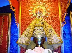 The statue had been hidden with other images and church bells to prevent them from falling into the hands of Moors/Saracens.[3] In 1434, Vela found the image of Our Lady of Peñafrancia buried under a rock on the mountain of Peña de Francia.[4]