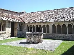The cloister, adjacent to the east side of the church, is dated to the early 12th century,[18][note 8] and would be contemporary with that of the church of San Giovanni in Valle in Verona. Of the four perimeter sides formed by colonnades, only three remain; in fact, the western side was replaced by a gate in recent times. The colonnades located to the north and east are covered by a roof, formed of barrel tiles and large stone roof tiles. In the center is placed a rustic well.