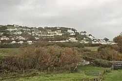 Penally (Welsh: Penalun) is a coastal village, parish and community 1 mile (1.6 km) southwest of Tenby in Pembrokeshire, Wales. The village is known for its Celtic Cross, Penally Abbey (a Gothic style country house), the neighbouring St. Deiniol's Well, WWI Practice trenches,[2] and Penally Training Camp (World War I and World War II).