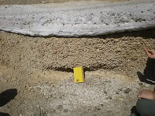 There are two types of vent landforms from the explosive interaction of magma and ground or surface water; tuff cones and tuff rings.[1] Both of the landforms are associated with monogenetic volcanoes and polygenetic volcanoes. In the case of polygenetic volcanoes they are often interbedded with lavas, ignimbrites and ash- and lapilli-fall deposits. It is expected that tuff rings and tuff cones might be present on the surface of Mars.[5][6]
