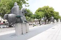Monument in Arcos de Valdevez depicting two jousting knights. Ponce fought at Valdevez and was captured and held for ransom.