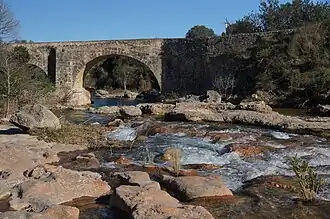 The Pont de l'Olivar is a bridge across the Sénia River in Spain. The northern side is in the municipality of Ulldecona, comarca of Montsià, province of Tarragona and autonomous community of Catalonia. The southern side is in the municipality of Vinaròs, comarca of Baix Maestrat, province of Castellón and autonomous community of Valencia. The bridge is included in the Inventory of the Architectural Heritage of Catalonia.[1]