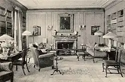 It was constructed in 1925 as the home of Frederic B. Pratt. The home was designed by Charles A. Platt in the French Renaissance style. It had 21 rooms and was on a 35-acre estate.[1][2] Pratt had the interior designed for comfort rather than to impress because he desired to avoid public attention.[3] The current mansion replaced an earlier mansion designed around 1898. Martha Brookes Brown Hutcheson was the landscape architect for the original estate, which was retained when the building was replaced.[4]