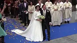 On 12 August 2013, Viktória and Prince Jaime of Bourbon-Parma, Count of Bardi announced their engagement. They married in a civil ceremony in Wijk bij Duurstede on 3 October 2013. A religious wedding was held on 5 October 2013 at the Church of Our Lady of the Heavens in Apeldoorn.[10] The wedding was attended by members of the Dutch royal family, including Former Queen Beatrix, King Willem-Alexander and Queen Maxima.[11] Per a 1996 royal decree issued by Queen Beatrix, Viktória was incorporated into the Dutch nobility and became entitled to the style Royal Highness upon her marriage.[12] Also, she was bestowed, before her marriage, with the title Countess of Montizòn by her brother-in-law, Prince Carlos, Duke of Parma, in 2013.[13][14]