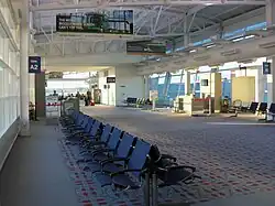 The present airport terminal was completed in 1985 after studies showed that an addition to the 1954 structure would be more costly than an entirely new terminal. The shift to the new $11 million terminal allowed expansion of airline facilities; between 1979 and 1986, the number of airlines increased from two to seven.[3]