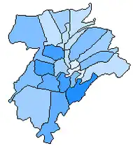 Quarters shaded by population. Greater population is reflected by darker shades of blue.