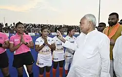 6. ^ "राजगीर में अंतरराष्ट्रीय स्टेडियम का सीएम नीतीश कुमार ने किया शिलान्यास" [CM Nitish Kumar laid the foundation stone of the international stadium in Rajgir]. Zee News (in Hindi). 12 October 2018. Retrieved 31 March 2022.
