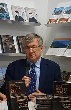 Sir Richard John Evans FRSL FRHistS FBA FLSW (born 29 September 1947) is a British historian of 19th- and 20th-century Europe with a focus on Germany. He is the author of eighteen books, including his three-volume The Third Reich Trilogy (2003–2008). Evans was Regius Professor of History at the University of Cambridge from 2008 until he retired in 2014, and President of Cambridge's Wolfson College from 2010 to 2017. He has been Provost of Gresham College in London since 2014. Evans was appointed Knight Bachelor for services to scholarship in the 2012 Birthday Honours.[2][3]