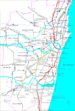 Map of Chennai City showing the Buckingham Canal. The Canal connects the Coovum and Adayar rivers.