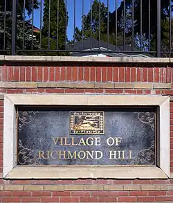The village of Richmond Hill was incorporated by a bylaw of the York County Council on June 18, 1872,[4] coming into effect January 1, 1873.[5] In September 1956, the Ontario Municipal Board approved its elevation to Town status, effective January 1, 1957.[6]