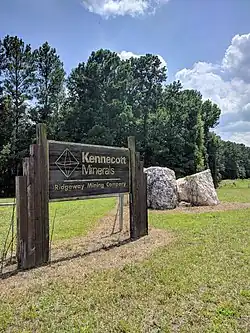 The Ridgeway mine was a gold and silver open-pit mine near Ridgeway, South Carolina. In its eleven years of operation between 1988 and 1999, it produced 1,500,000 ounces of gold and 900,000 ounces of silver.[1] The mine's two ore bodies are part of the gold-rich[3] Carolina Slate Belt rock package that runs through the upstate Piedmont foothills. The operator of the mine, the Ridgeway Mining Company, is a subdivision of Kennecott Minerals. Kennecott is a subdivision of Rio Tinto which is one of the world's largest mining companies.