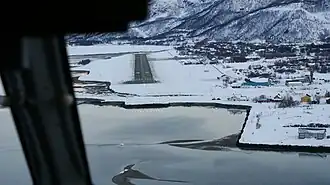 Sørkjosen Airport (Norwegian: Sørkjosen lufthavn; IATA: SOJ, ICAO: ENSR) is a regional airport located at the village of Sørkjosen in Nordreisa Municipality in Troms county, Norway, about 4.5 kilometres (2.8 mi) from the municipal center of Storslett. Owned and operated by the state-owned Avinor, it handled 15,198 passengers in 2014. The airport has a 880-meter (2,890 ft) runway and is served by Widerøe, which operates regional routes using the Dash 8-100 to Tromsø, and some communities and towns in Finnmark on public service obligation contracts. The airport opened in 1974 and was originally served using de Havilland Canada Twin Otter aircraft. Dash 8s were introduced in 1995 and two years later ownership was transferred from Nordreisa Municipality to the state.