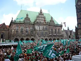 Werder fans celebrating the team's 2008–09 DFB-Pokal triumph at the Bremen City Hall