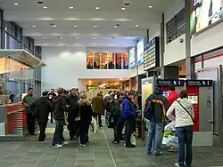 Saarbrücken Hauptbahnhof or Saarbrücken Central Station[4][5][6] also called Eurobahnhof Saarbrucken, is the principal railway station in the German city of Saarbrücken and the largest station in the Saarland, a German state on the border with France. Around 10 million passengers use the station annually.[7] The station is operated by DB Station&Service as a category 2 station, served by regional and long-distance trains.
