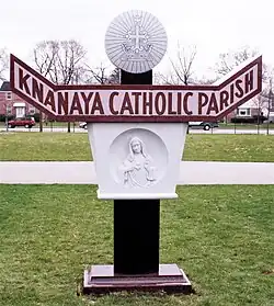 Sacred Heart Knanaya Catholic Church located in Maywood, Illinois in the United States is the first Knanaya Catholic Church established outside the juridical boundary of the Syro-Malabar Catholic Archeparchy of Kottayam.[1] This church is also the first church of the Knanaya Region under the St. Thomas Syro-Malabar Catholic Diocese of Chicago.[2] The migrants from the Archdiocese of Kottayam living in Illinois, Indiana, and Wisconsin were members of this parish[3] at the time of its establishment on 24 September 2006.[4] The parishioners were formerly members of the Knanaya Catholic Mission established by the Archdiocese of Chicago since 28 October 1983.[5] Later another church was established in Morton Grove on 18 July 2010 for the parishioners living in the north side of 90 Expressway.[6] The church was elevated as a forane church by Bishop Mar Jacob Angadiath on 22 March 2015.[7] The parish servers around 400 Knanaya Catholic families.[4]