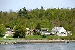 In the nineteenth century, the timber industry was very active in this section of the Laurentian Mountains and the first paper mill in Canada was built on this land in 1803.[5] From the 1830s onward, Carillon became the site of the Carillon Canal, built to facilitate military transport up the Ottawa River. It was enlarged in the 1870s to accommodate commercial boat traffic. Today it is a National Historic Site of Canada.[6] In 1959, construction began on the Carillon Generating Station and dam, raising the Ottawa River water level by over 62 feet (19 m) at Carillon, flooding the rapids of Long-Sault and transforming them into calm water.[7]