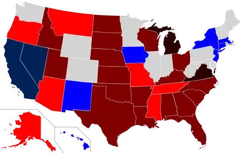 As of 2015, same-sex marriage is now legal in all fifty states due to a ruling from the Supreme Court. However, in the aftermath of the Dobbs v. Jackson Women's Health Organization ruling, statutory or constitutional bans on same-sex marriages have received renewed attention over its applicability should Obergefell be overturned.[1][2]