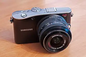 The Samsung NX100 is a 14.0 effective megapixel APS-C crop CMOS mirrorless interchangeable lens digital camera made by Samsung. It was announced on September 14, 2010.[1]