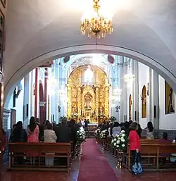 The modern community has its roots in the establishment of two monastery complexes called San Jacinto and El Carmen in the 16th century, but the real center would be El Carmen.[3] The Spanish town here was originally established with the name of San Jacinto Tenanitla.[6] El Carmen was begun in 1597 when in the indigenous leader of Coyoacán, Felipe de Guzmán Itzolinque, along with Andrés de Mondragón and Elvira Gutierrez, donated lands to the Carmelites in the Tenanitla and Chimalistac areas. The monks used the land to establish their monastery and a school for monks, with the school, named San Ángel, inaugurated in 1613. The monastery and school became wealthy and powerful, mostly due to the productively of the lands, especially the orchards which had, at one time, over 13,000 trees.[3][6] This prompted the community to rename itself San Ángel.[6]