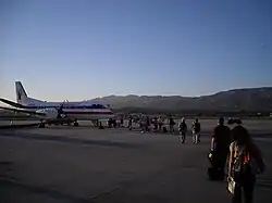 In the 1980s Santa Barbara–based Apollo Airways, a commuter airline which subsequently changed its name to Pacific Coast Airlines, flew Handley Page HP.137 Jetstream propjets from the airport with nonstop service to Los Angeles, Las Vegas, San Francisco, San Jose (CA), Monterey, Fresno and Bakersfield with direct flights to Sacramento and Lake Tahoe.[23] By the spring of 1982, Pacific Coast was operating nonstop service between Santa Barbara and Los Angeles, Las Vegas, Oakland, Ontario (CA), San Jose (CA), Sacramento, Bakersfield and Santa Maria.[24] Another locally based airline was Connectair operating Fairchild F-27J turboprops with nonstop flights to Los Angeles, Las Vegas and San Jose, California.[25] Both Connectair and Pacific Coast are no longer in existence.