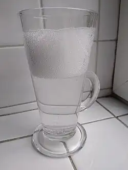 In the year of 1905, a healing spring in the village of Leppersdorf in the municipality of Scharten was discovered.[3] In 1926, Otto Burger had the idea to enhance the springwater by adding fruit syrup and selling it under the name "Schartner Bombe" (eng.:"a bomb from Scharten"). Its name is derived from the bomb-like shape of the initial design of the bottle. The brand was first recognized in the commercial register in 1927[3] and sales were steady, even during the Great Depression. After Burger's death in 1940, the brand was handed over to Lichtenegger Nährmittel Werke. In the 1960s, Schartner Bombe was bought by Mühlgrub brewery in Bad Hall, which expanded production extensively by constructing the world's largest bottling line in 1969.[4] Local water from Bad Hall was used from 1975 on.[3] After multiple ownership changes, today's manufacturer Starzinger eventually obtained the rights to produce the soft drink in 1995 and managed to revive marketing greatly, after revenue was at an all-time low.[5][6][7]