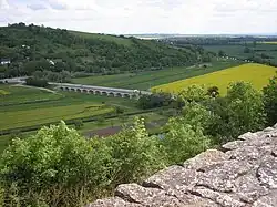 The landscape is characterized by a patchwork of dry grassland, chalk heathland, pastureland, clearance cairns, shrubs, orchards, forests and arable fields. Medieval mining pits stretch along the ridge of the ridge. The size and diversity of the various heat- and dry-loving biotopes as well as their rarity provide habitats for a large number of animals and plants that have adapted to these dry conditions, which is particularly important for inter alia wild bees, grasshoppers and butterflies. In winter, western barbastelles find shelter here, which is why the area is currently considered the largest known hibernation roost for this species of bat in Thuringia.