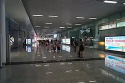 Shenzhen North Railway Station (Chinese: 深圳北站; pinyin: Shēnzhèn Běi Zhàn; Jyutping: sam1 zan3 bak1 zaam6) is one of the four large intercity railway stations of Shenzhen, located in Longhua District.[2] It has 11 platforms and 20 lines. It is an interchange station between the Guangzhou–Shenzhen–Hong Kong Express Rail Link, the Hangzhou–Fuzhou–Shenzhen High-Speed Railway, future Shenzhen–Zhanjiang high-speed railway[3] and the Shenzhen Metro Lines 4, 5 and 6.[4][5][6][7] Construction started in 2007 and was completed in June 2011.[8][9] The Line 4 and Line 5 platforms opened on 22 June 2011, CRH platforms opened on 26 December 2011 and Line 6 platforms opened on 18 August 2020.
