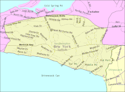 Shinnecock Hills is a hamlet (and census-designated place) in Suffolk County, New York, United States. The population was 2,188 at the 2010 census.[2] It is the home of a leading golf club, Shinnecock Hills Golf Club. Ownership of the area has been the subject of a 2005 lawsuit filed by the Shinnecock Indian Nation.
