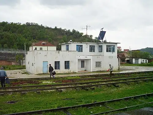 The 28 kilometre rail line between Vorë and Laç was completed between 1962 and 1963 with the help of volunteers. Raw materials were imported from Morocco, which were then hauled by locomotives from Durrës to Laç.[1] The line officially opened on 7 May 1963.[2]