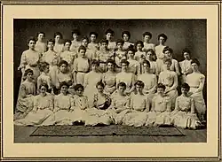 In the United States, gender segregation in schools was initially a product of an era when traditional gender roles categorically determined scholastic, professional, and social opportunities based on sex. For instance, leading experts supported gender segregation in higher education because they considered it "to be dangerous and inappropriate for women. Experts claimed that scientific evidence established that women were physically and temperamentally not suited to the rigors of the academy . ... Separate education for men and women paralleled the separate spheres that each was expected to occupy."[44] Furthermore, colleges and universities did not consider female applicants until the second half of the nineteenth century, when the women's rights movement began advocating for gender equality.[45] In response to social progression, "at the turn of the twentieth century, educators, particularly those in the South, fiercely resisted coeducation in elite all-male colleges, and most of the Ivy League institutions would drag their feet well into the twentieth century before becoming coeducational."[46]