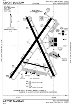 2. ^ a b c d e FAA Airport Form 5010 for FSD PDF. Federal Aviation Administration. Effective January 23, 2025.