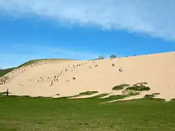 Additionally, a number of campgrounds exist on the Manitou Islands. These include three main campgrounds on South Manitou Island, including the Weather Station Campground located on the south side of the island,[21] the Bay Campground on the west shore of the island[22] and the Popple Campground on the north shore.[23] Furthermore, in addition to federal campgrounds within the national lakeshore itself, there are many other camping areas nearby, which cater to the large number of tourists visiting Sleeping Bear Dunes each year. There are at least 20 distinct camping areas in the region immediately surrounding Sleeping Bear Dunes.[24]