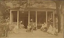 Sofija Bilevičiūtė-Zubovienė with her family on the veranda of her house in Šiauliai (in the center-right with small daughter on her knees, c. 1891)