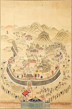 The painting Tongnaebu sunjŏlto depicts a battle against Japanese forces in Dongnae.[71]